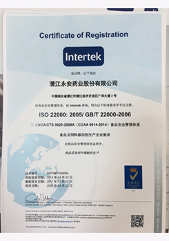 潛江永安藥業(yè)股份有限公司成立于2001年,坐落于江漢平原腹地潛江市國家高新技術產業(yè)開發(fā)區(qū),占地500余畝,注冊資金貳億玖仟肆佰陸拾捌萬貳仟伍佰元整,是一家擁有自主知識產權的國家高新技術企業(yè)。公司股票于2010年3 月5日在深圳證券交易所掛牌上市(股票代碼為002365)。公司具有雄厚的技術開發(fā)能力,是湖北省創(chuàng)新型企業(yè)和湖北省知識產權建設示范企業(yè)。公司研發(fā)平臺分別被認定為省級企業(yè)技術中心和湖北省功能性食品添加劑工程技術研究中心。 經過多年的發(fā)展,公司形成了以食品及藥品添加劑牛磺